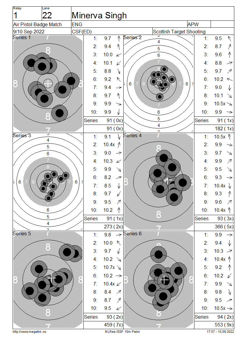 | 6 | 22 | 176 | SINGH Minerva | ENG | APW | 91 | 91 | 91 | 93 | 93 | 94 | 553- 9x | |||||||||||||||||||||||||||||||||||||