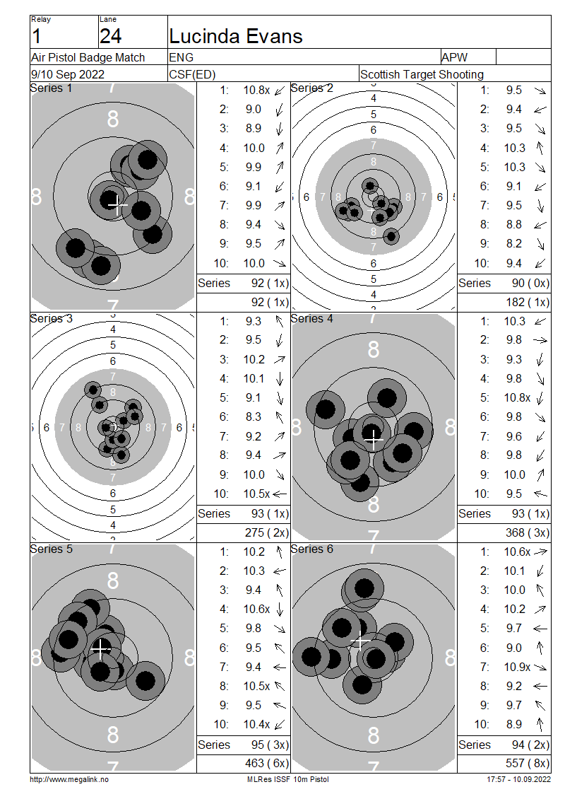 | 3 | 24 | 178 | EVANS Lucinda | ENG | APW | 92 | 90 | 93 | 93 | 95 | 94 | 557- 8x | |||||||||||||||||||||||||||||||||||||