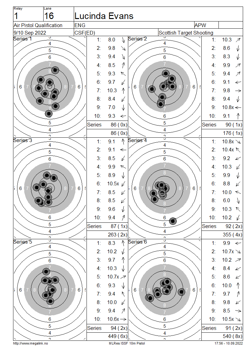 | 20 | 16 | 178 | EVANS Lucinda | ENG | APW | 86 | 90 | 87 | 92 | 94 | 91 | 540- 8x | |||||||||||||||||||||||||||||||||||||