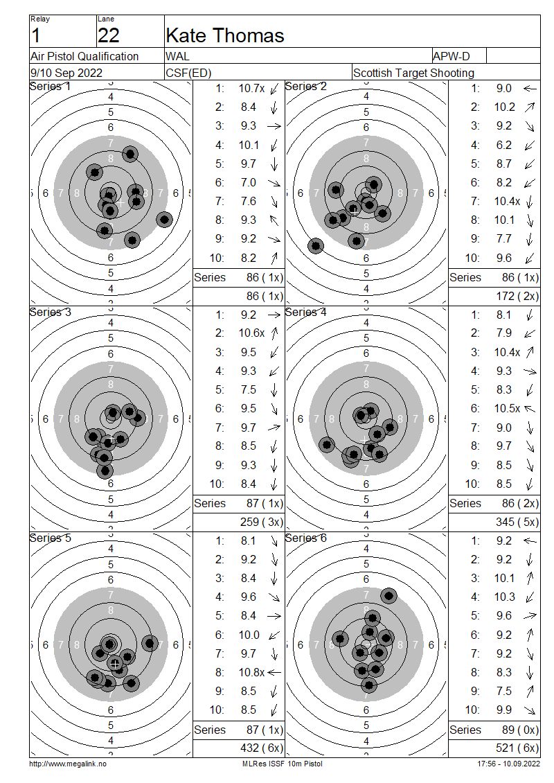 | 25 | 22 | 200 | THOMAS Kate | WAL | APW-D | 86 | 86 | 87 | 86 | 87 | 89 | 521- 6x | |||||||||||||||||||||||||||||||||||||