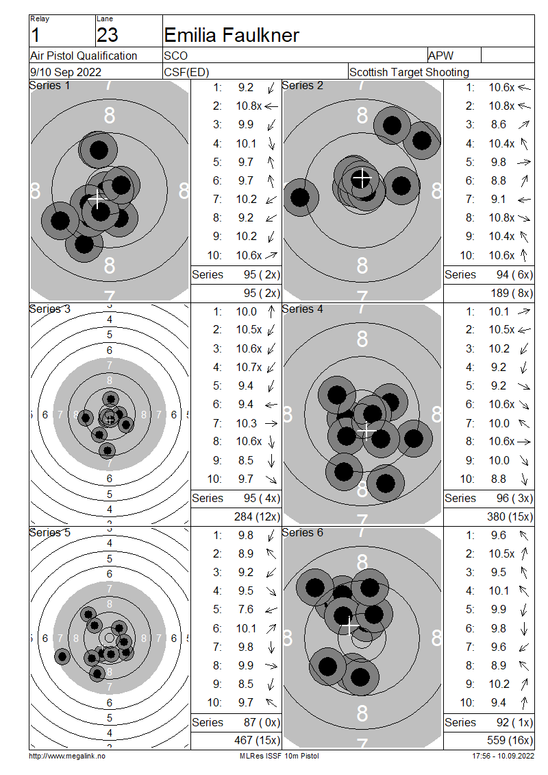 | 7 | 23 | 210 | FAULKNER Emilia | SCO | APW | 95 | 94 | 95 | 96 | 87 | 92 | 559-16x | |||||||||||||||||||||||||||||||||||||