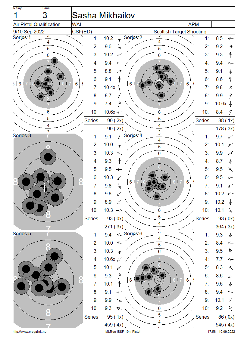 | 10 | 4 | 206 | WALKER Andrew | SCO | APM | 90 | 96 | 94 | 95 | 88 | 93 | 556- 6x | |||||||||||||||||||||||||||||||||||||
