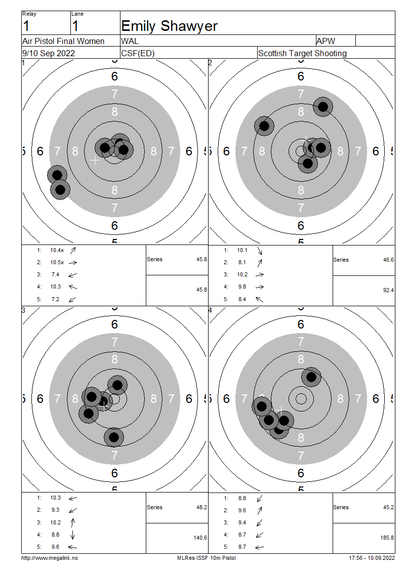 | 6 | A | 196 | SHAWYER Emily | WAL | 45.8 | 46.6 | 48.2 | 45.2 | 185.8 | ||||||||||||||||||||||||||||||||||||||||