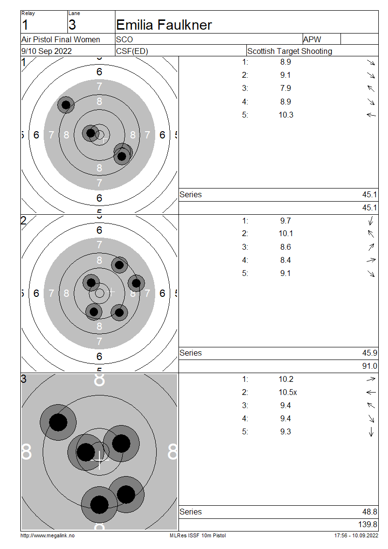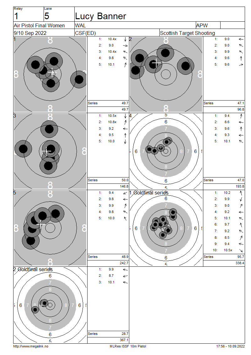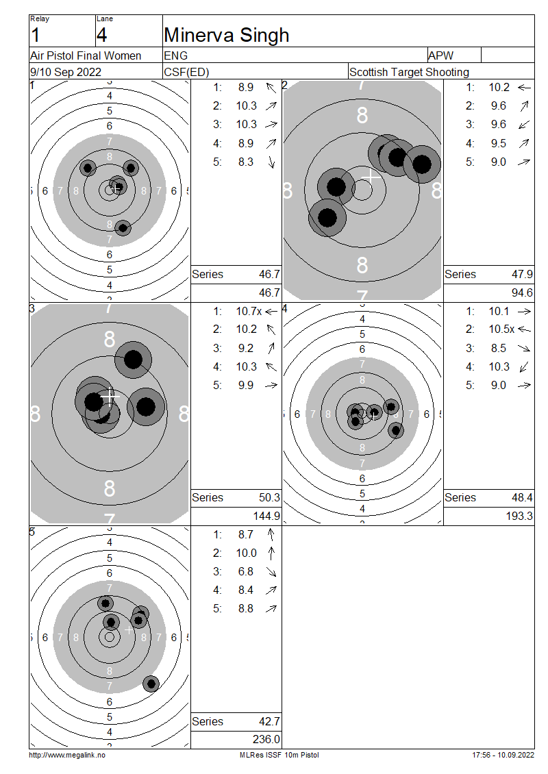 | 3 | F | 177 | GILMORE Francine | ENG | 48.1 | 48.0 | 48.7 | 47.1 | 47.5 | 239.4 | |||||||||||||||||||||||||||||||||||||||