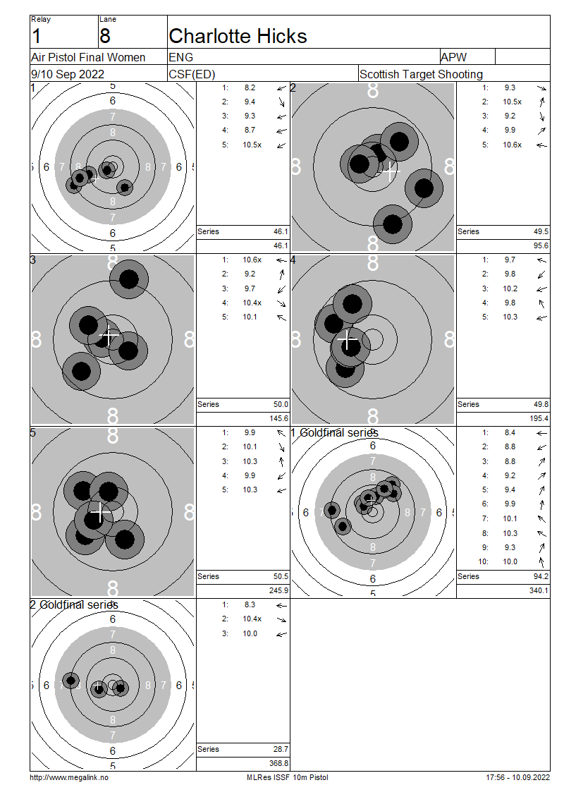 | 1 | H | 175 | HICKS Charlotte | ENG | 46.1 | 49.5 | 50.0 | 49.8 | 50.5 | 245.9 | |||||||||||||||||||||||||||||||||||||||