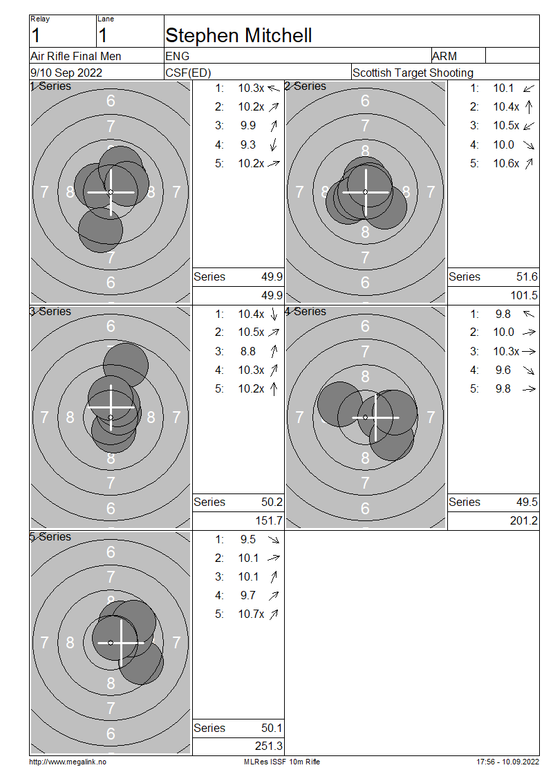 | 3 | A | 163 | MITCHELL Stephen | ENG | 49.9 | 51.6 | 50.2 | 49.5 | 50.1 | 251.3 | |||||||||||||||||||||||||||||||||||||||