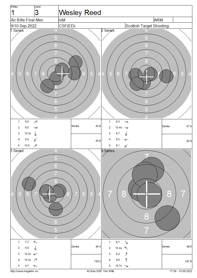 | 5 | C | 223 | REED Wesley | IoM | 45.8 | 47.0 | 46.4 | 48.6 | 187.8 | ||||||||||||||||||||||||||||||||||||||||