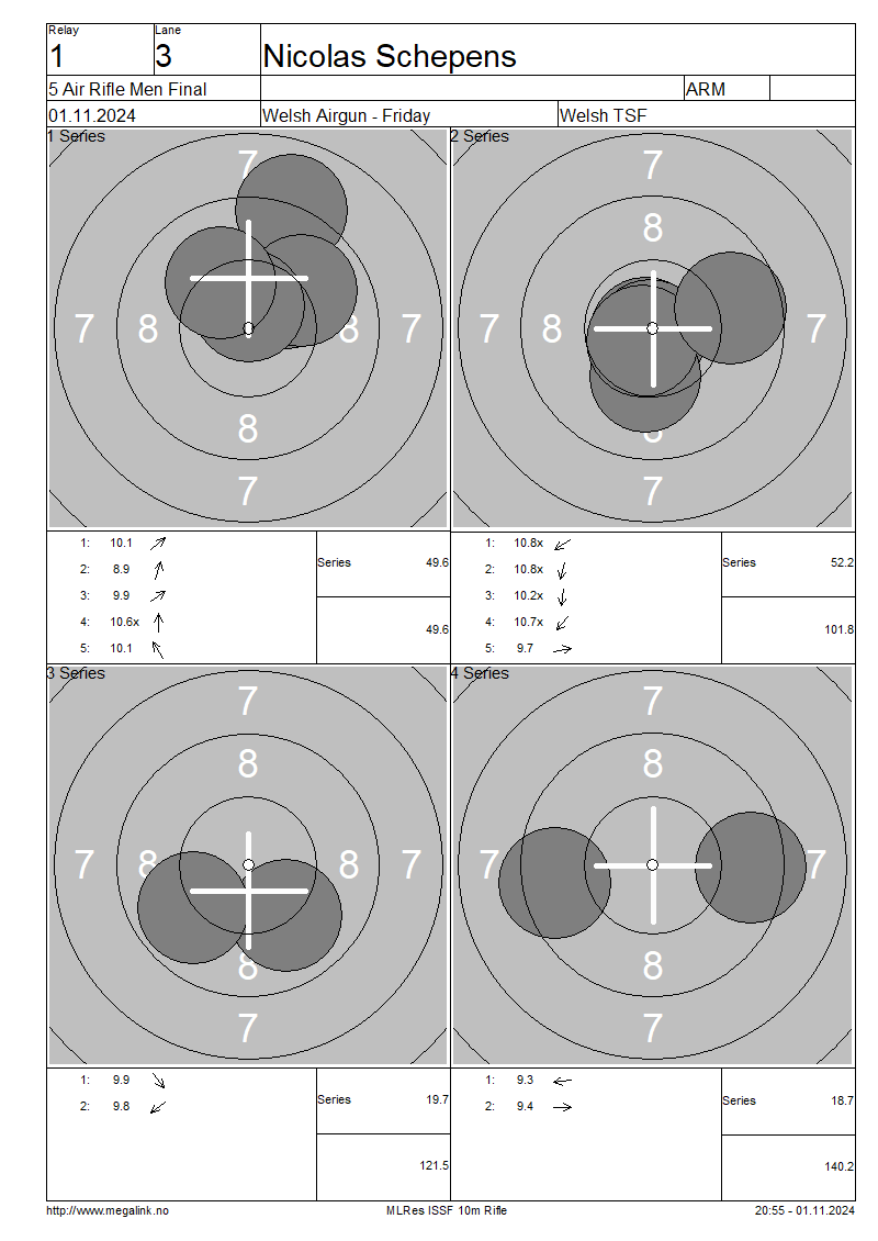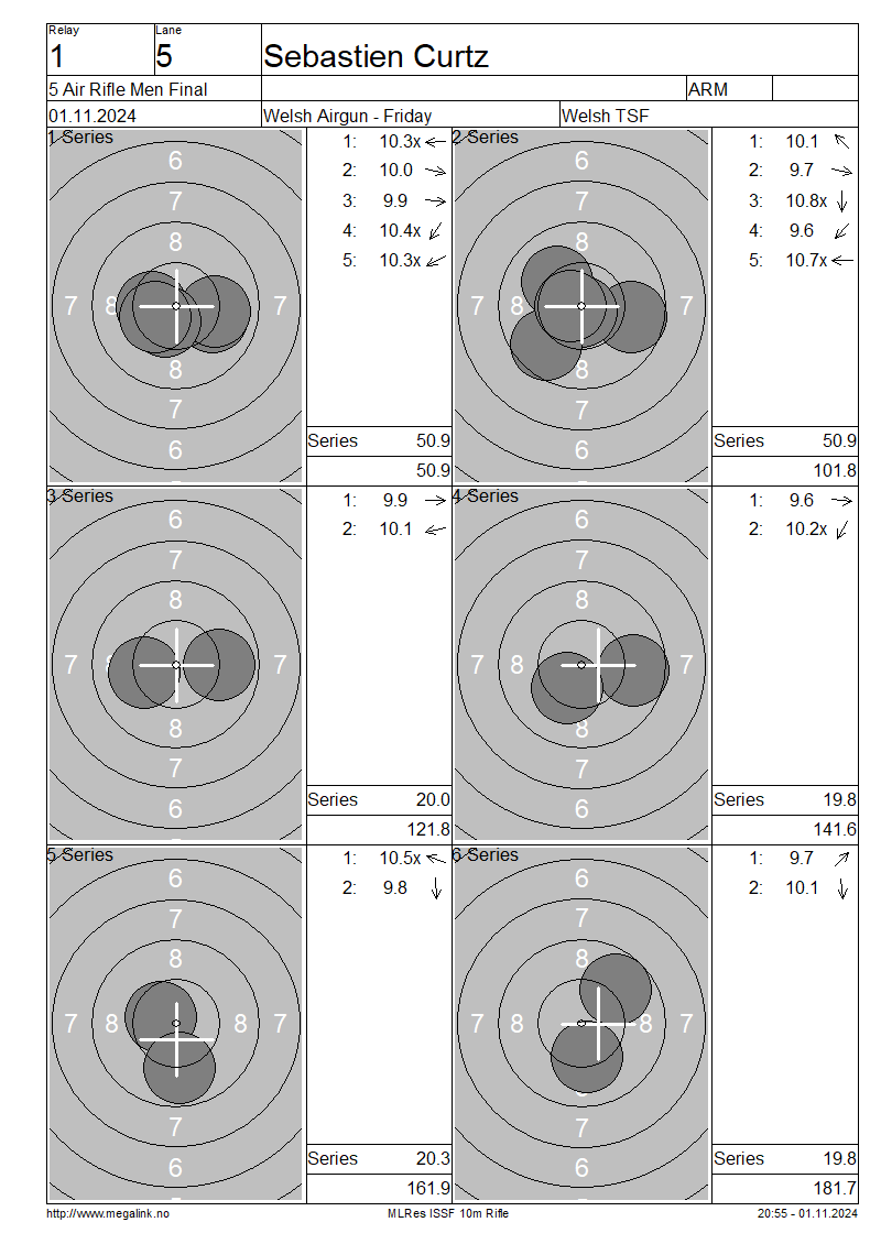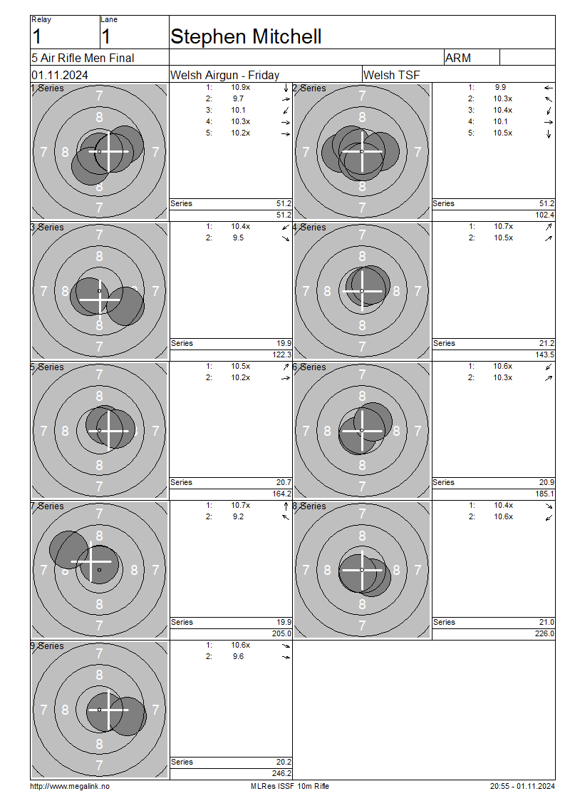 | 2 | A | MITCHELL Stephen | 51.2 | 51.2 | 19.9 | 21.2 | 20.7 | 20.9 | 19.9 | 21.0 | 20.2 | 246.2 | |||||||||||||||||||||||||||||||||||||