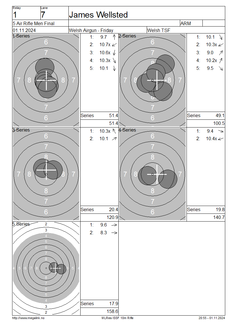 | 3 | D | GALLOWAY Bertie | 51.3 | 51.0 | 20.2 | 19.9 | 20.9 | 21.4 | 20.5 | 20.4 | 225.6 | ||||||||||||||||||||||||||||||||||||||