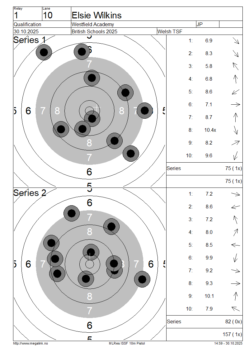 | 10 | 9 | WILKINS Elsie | Westfield Academy | JP | 75 | 82 | 157- 1x | QF | |||||||||||||||||||||||||||||||||||||||||