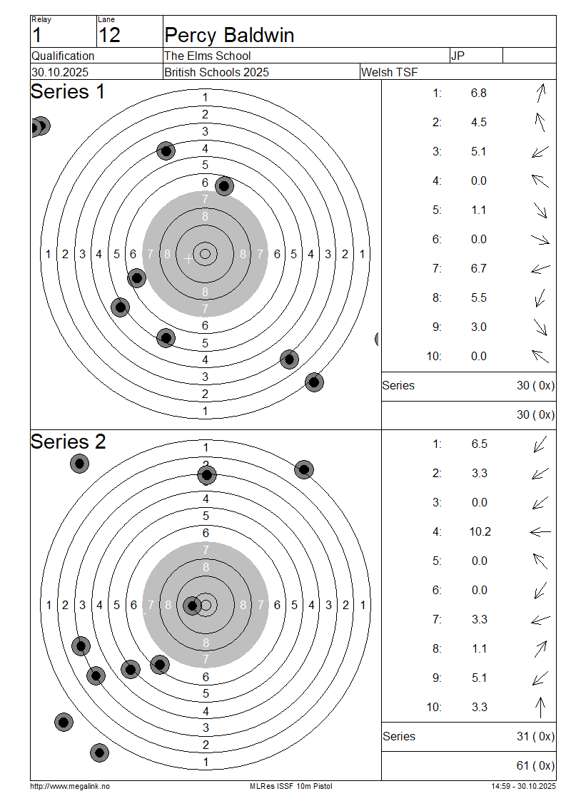 | 37 | 29 | PRICE Theo | Brecon High School | IS | 36 | 14 | 50- 0x | QF | |||||||||||||||||||||||||||||||||||||||||