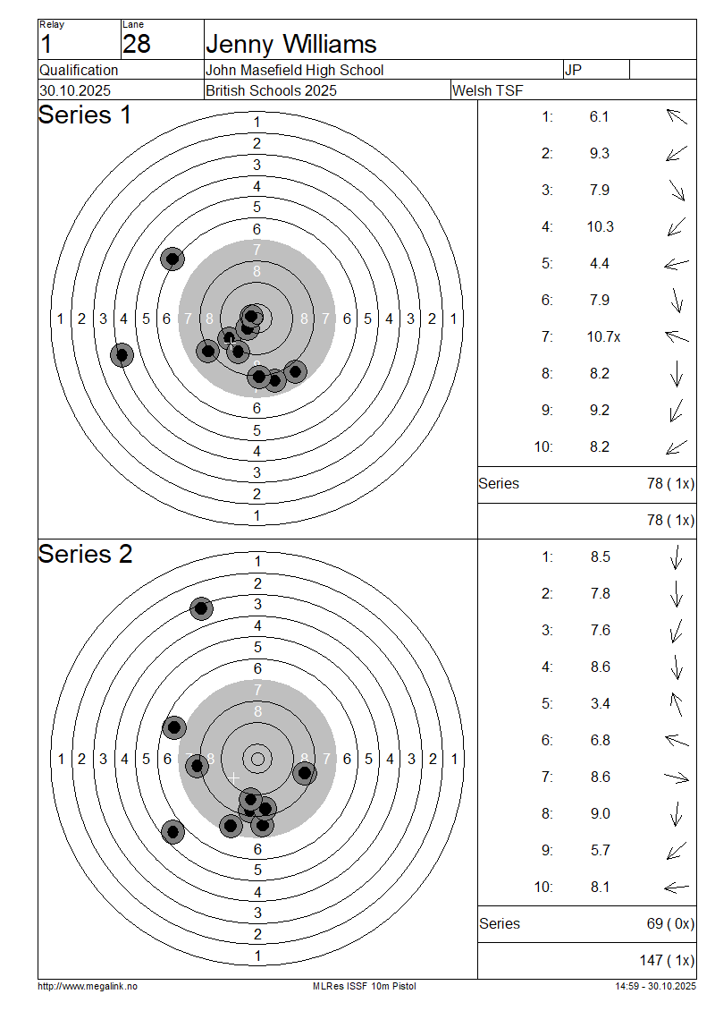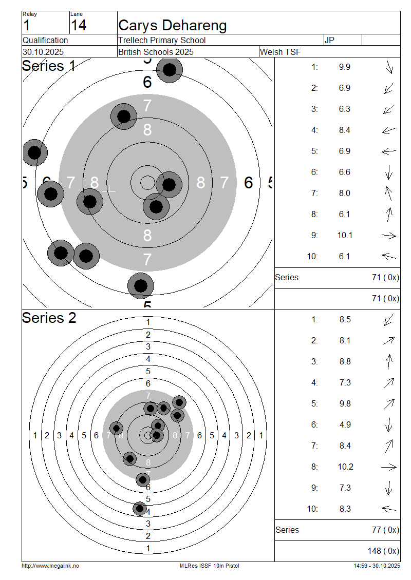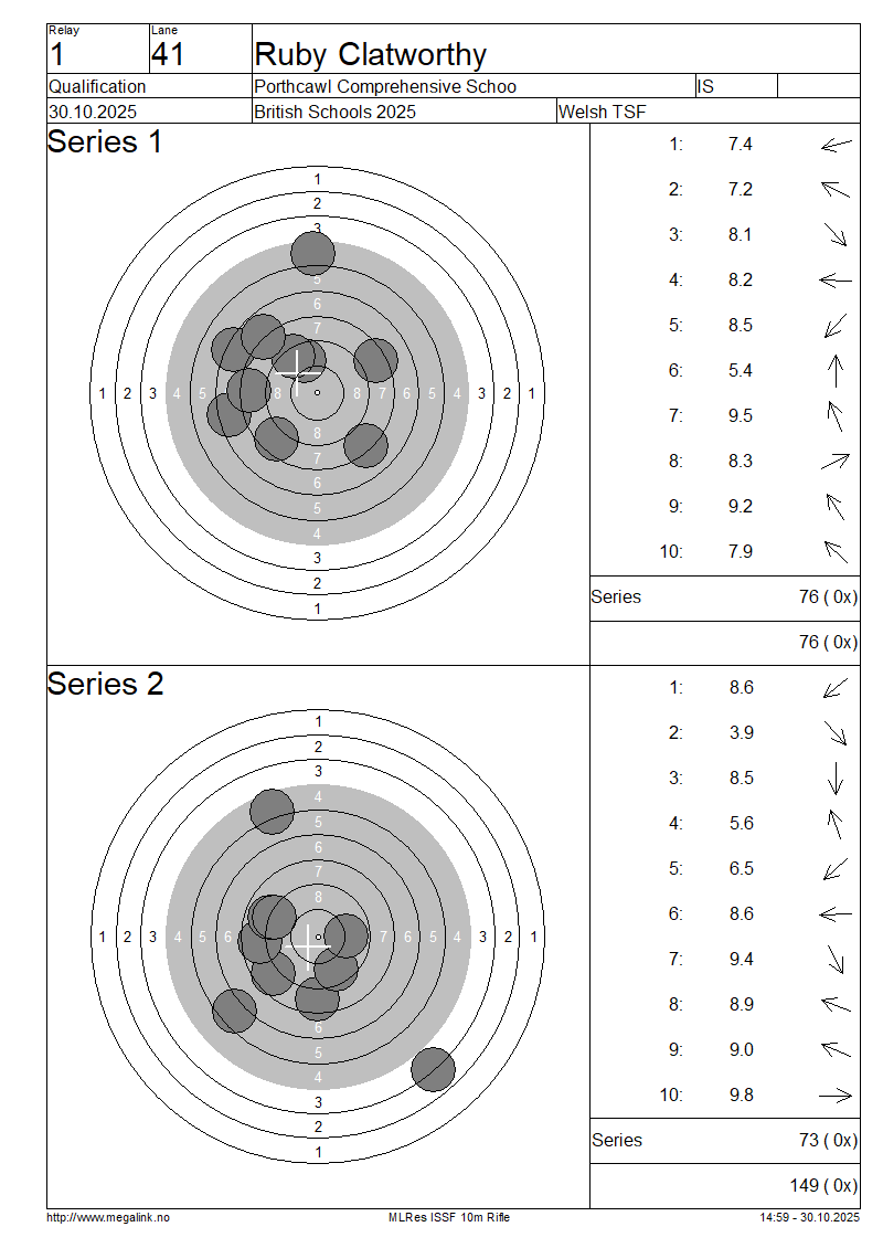 | 6 | 5 | JONES Cameron | Ysgol Gyfun Rhydywaun | JP | 87 | 77 | 164- 1x | QF | |||||||||||||||||||||||||||||||||||||||||