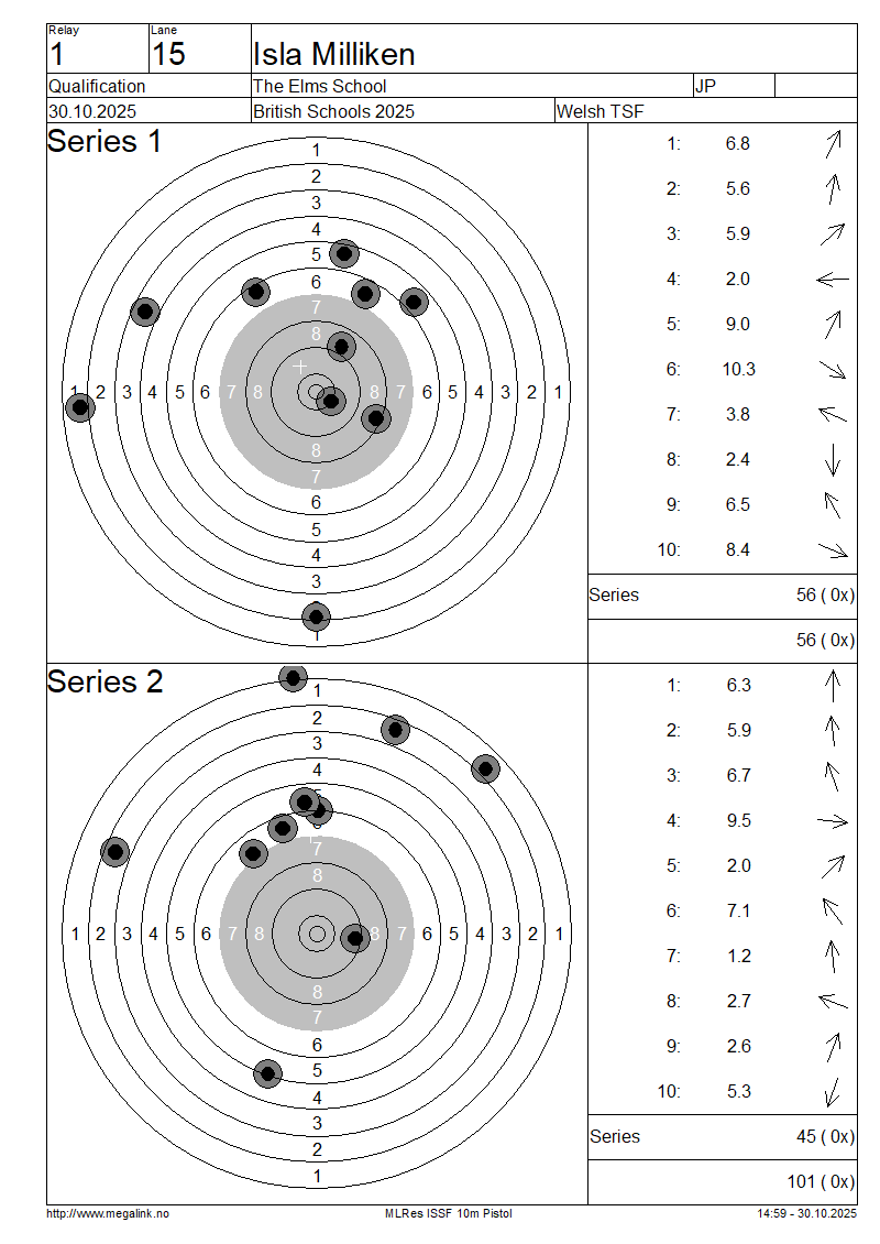| 15 | 15 | MILLIKEN Isla | The Elms School | JP | 56 | 45 | 101- 0x | ||||||||||||||||||||||||||||||||||||||||||