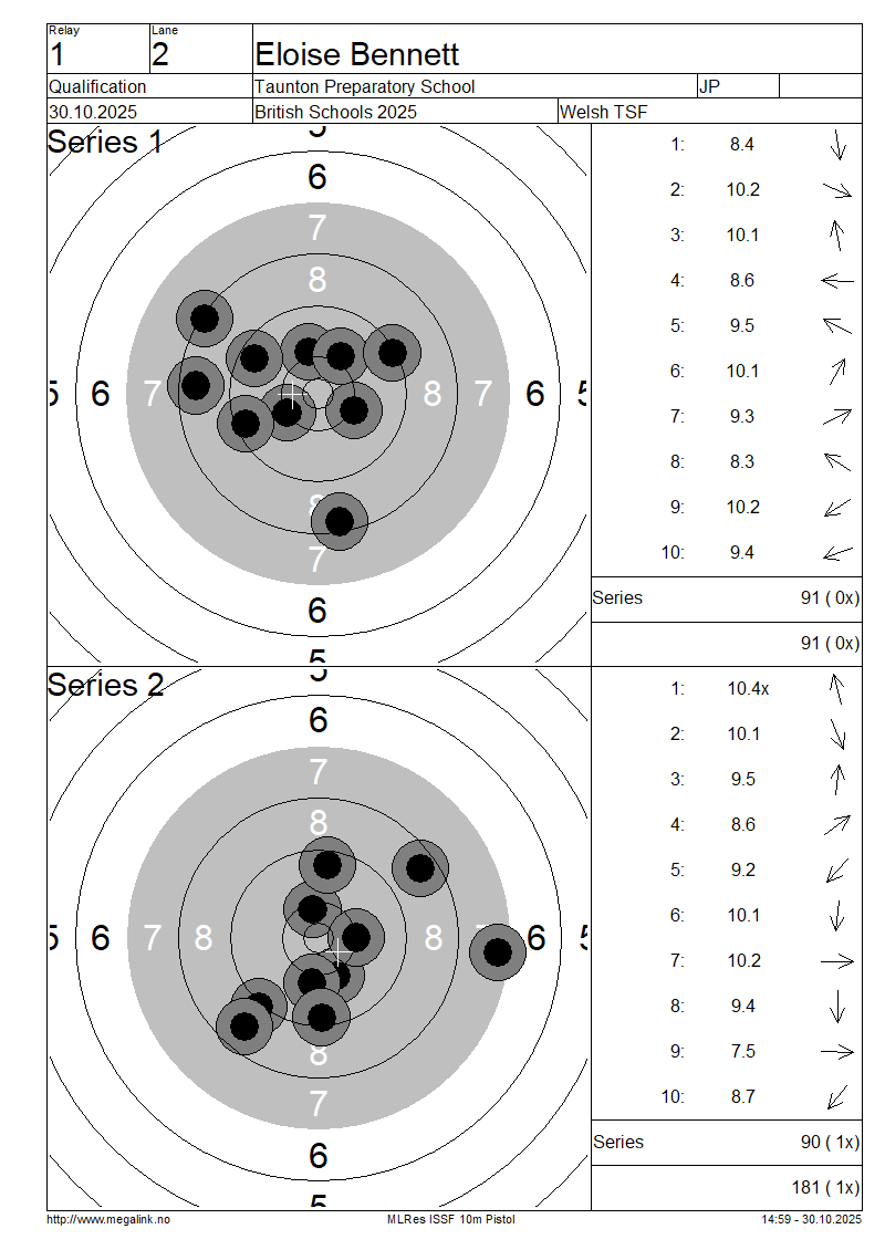 | 2 | 1 | BENNETT Eloise | Taunton Preparatory School | JP | 91 | 90 | 181- 1x | QF | |||||||||||||||||||||||||||||||||||||||||