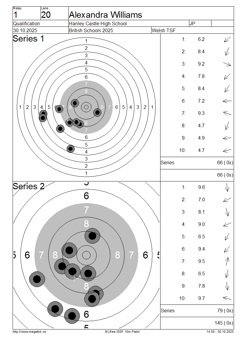 | 20 | 19 | WILLIAMS Alexandra | Hanley Castle High School | JP | 66 | 79 | 145- 0x | ||||||||||||||||||||||||||||||||||||||||||