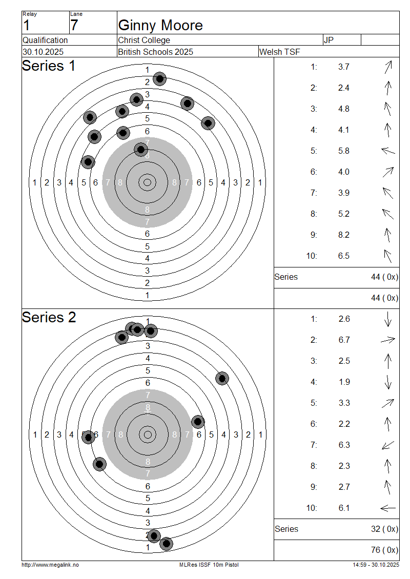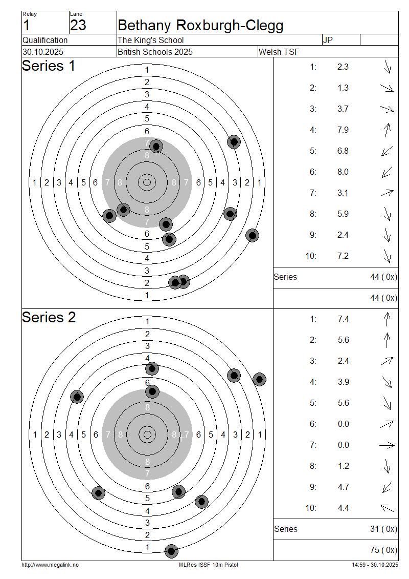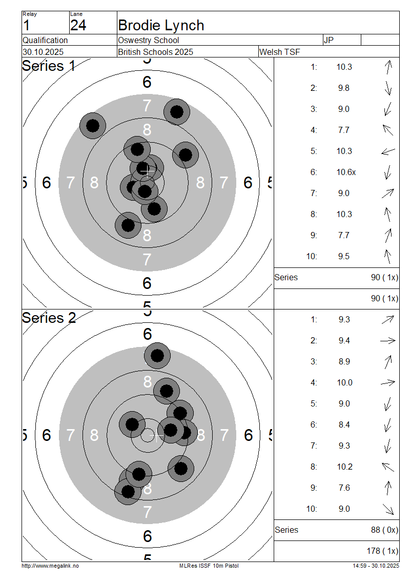 | 24 | 23 | LYNCH Brodie | Oswestry School | JP | 90 | 88 | 178- 1x | QF | |||||||||||||||||||||||||||||||||||||||||