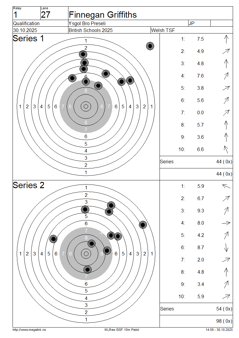 | 27 | 26 | GRIFFITHS Finnegan | Ysgol Bro Preseli | JP | 44 | 54 | 98- 0x | ||||||||||||||||||||||||||||||||||||||||||