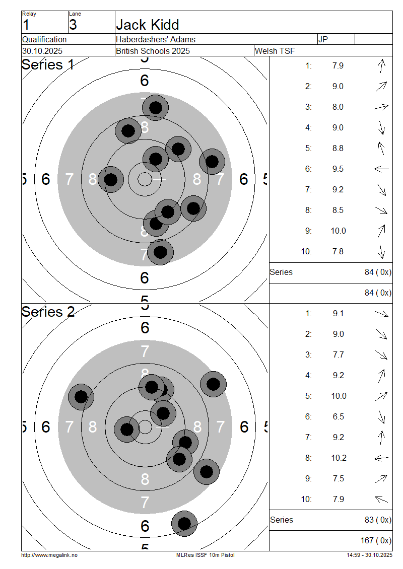 | 3 | 2 | KIDD Jack | Haberdashers' Adams | JP | 84 | 83 | 167- 0x | QF | |||||||||||||||||||||||||||||||||||||||||