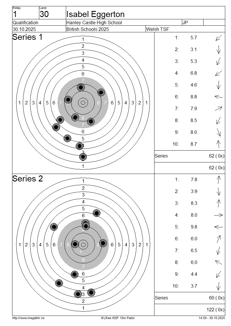 | 30 | 13 | EGGERTON Isabel | Hanley Castle High School | JP | 62 | 60 | 122- 0x | ||||||||||||||||||||||||||||||||||||||||||