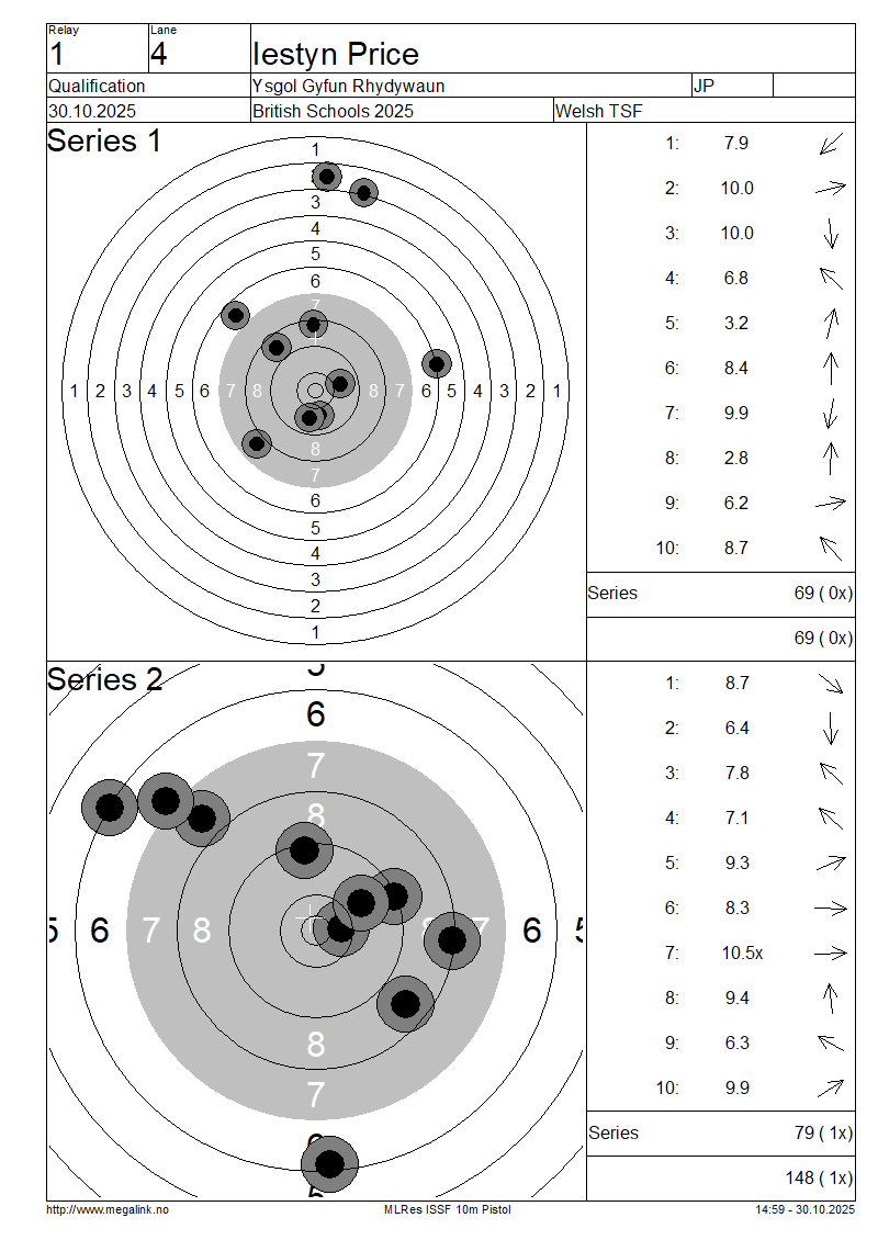 | 4 | 3 | PRICE Iestyn | Ysgol Gyfun Rhydywaun | JP | 69 | 79 | 148- 1x | ||||||||||||||||||||||||||||||||||||||||||