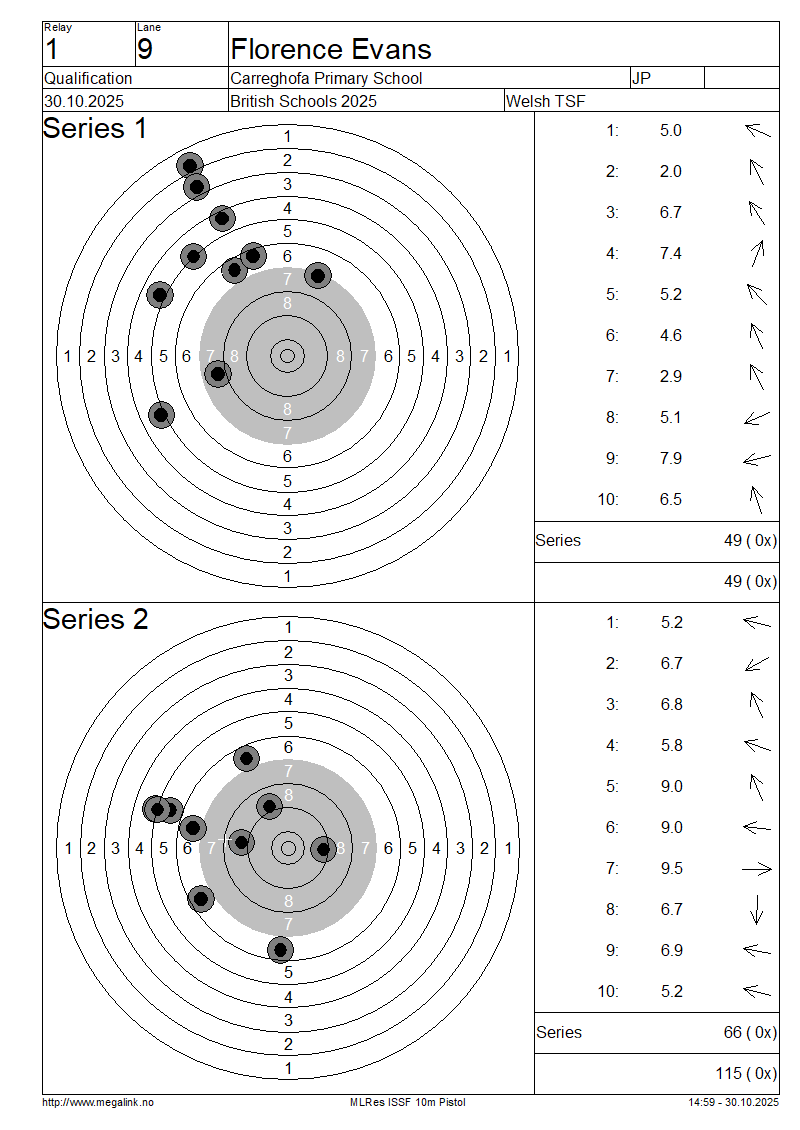 | 9 | 8 | EVANS Florence | Carreghofa Primary School | JP | 49 | 66 | 115- 0x | ||||||||||||||||||||||||||||||||||||||||||