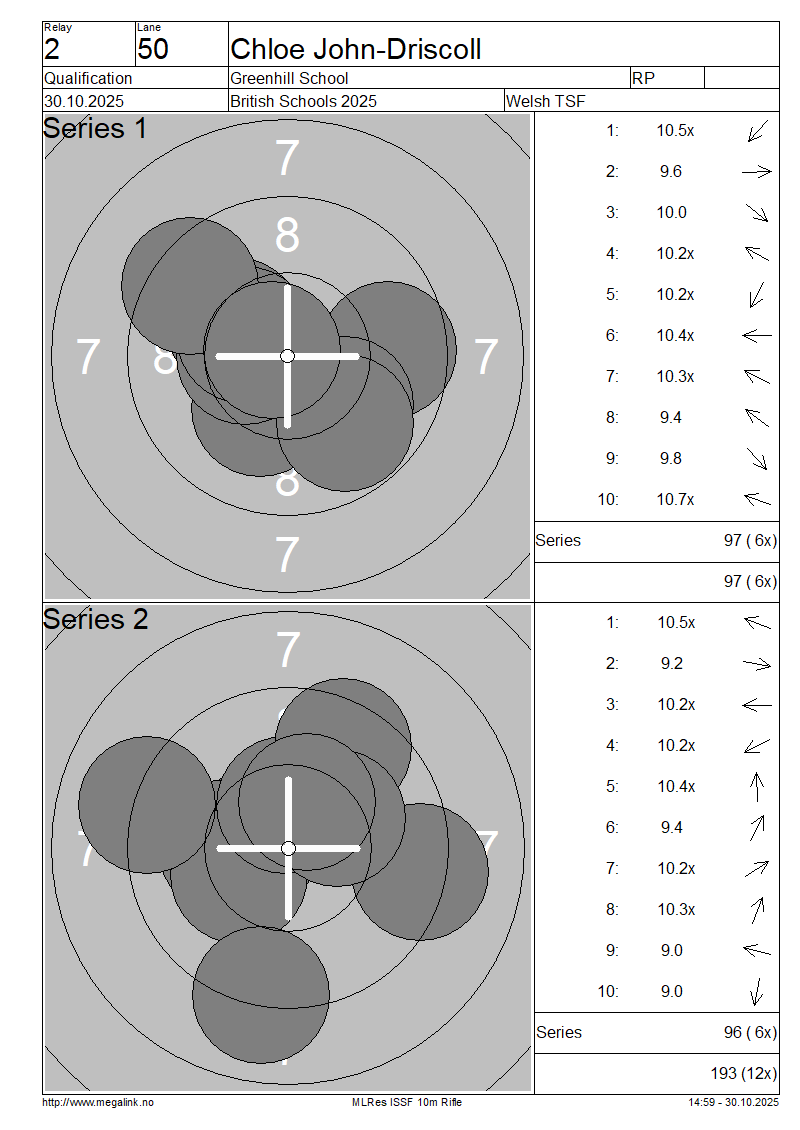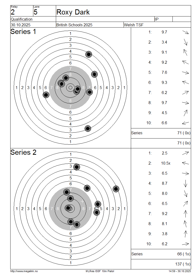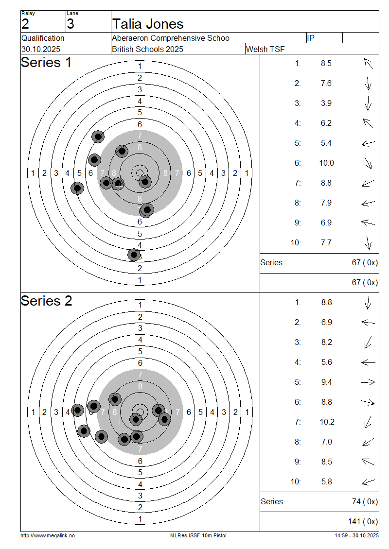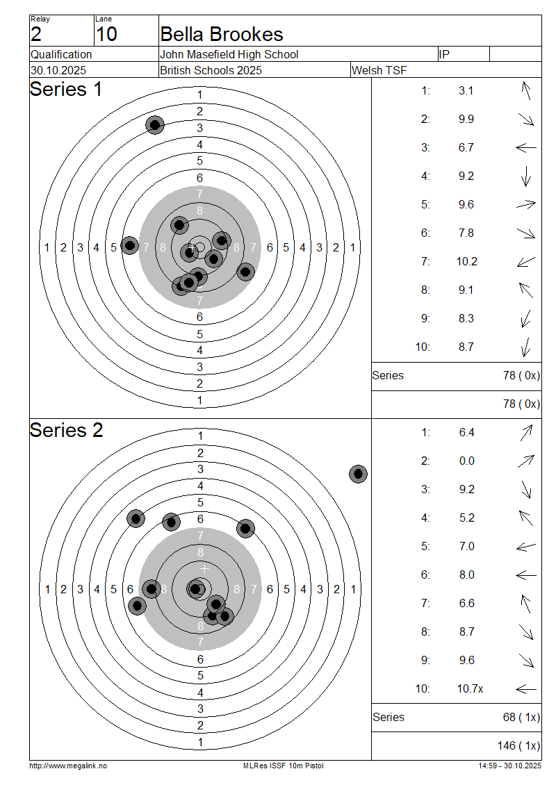| 12 | 28 | LEVERETT Hannah | Ysgol Bro Dinefwr | IP | 88 | 69 | 157- 3x | QF | |||||||||||||||||||||||||||||||||||||||||