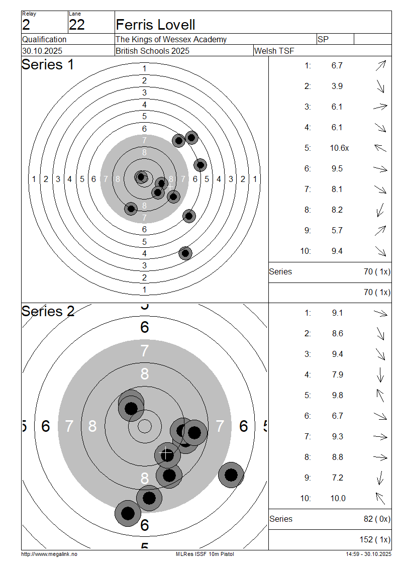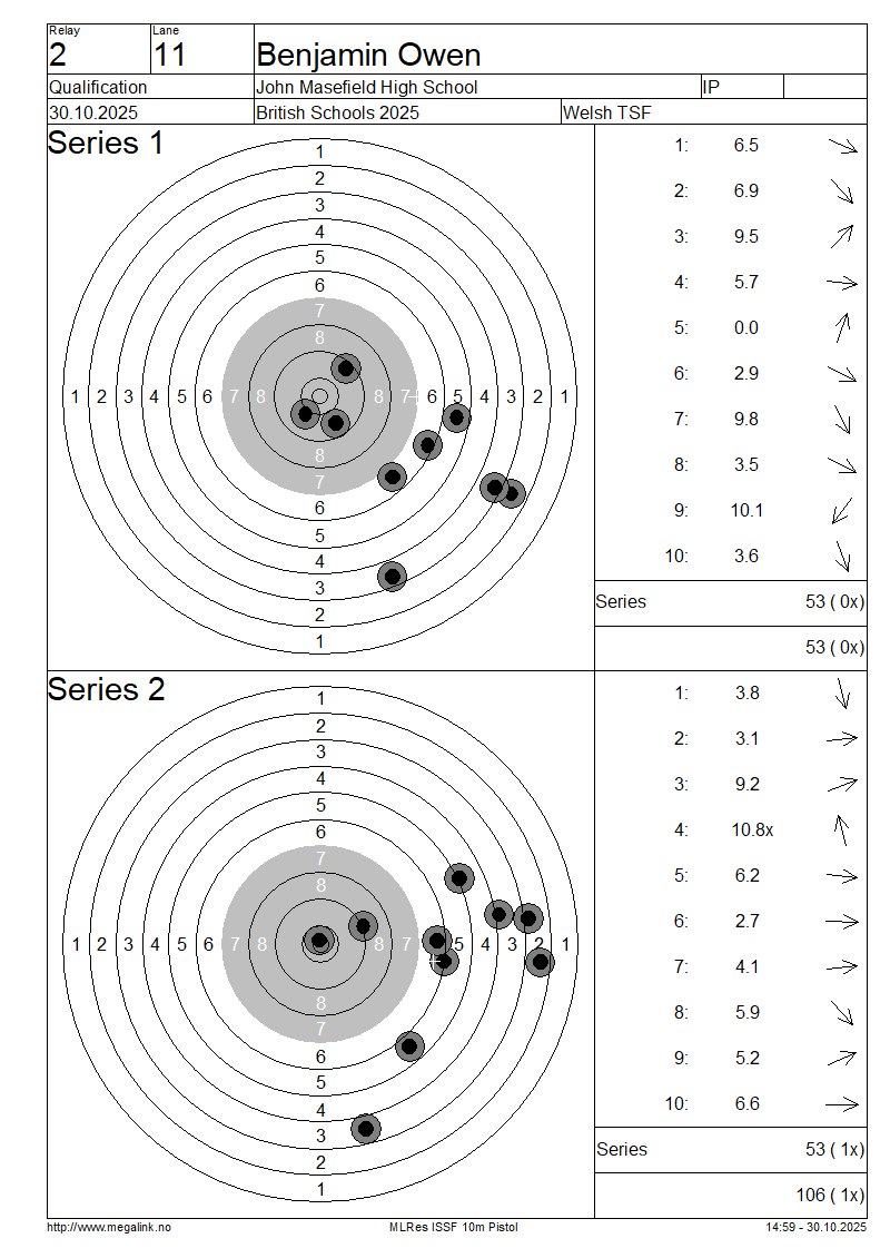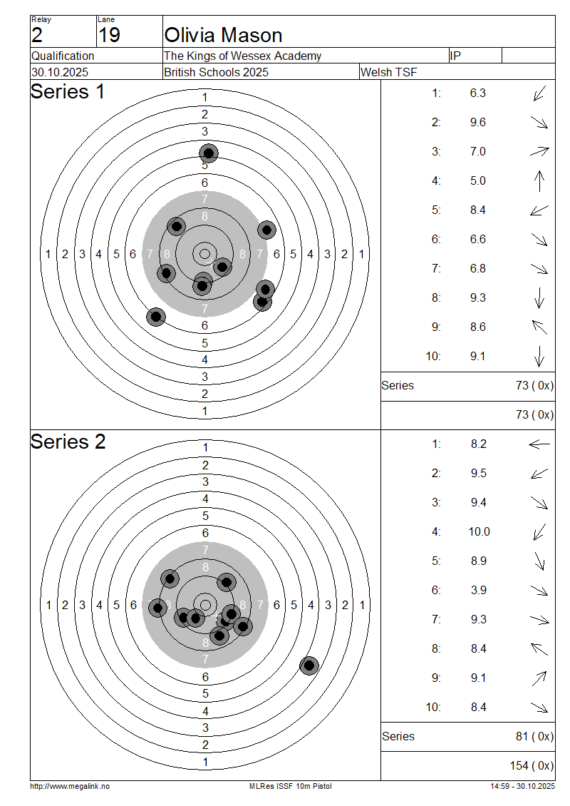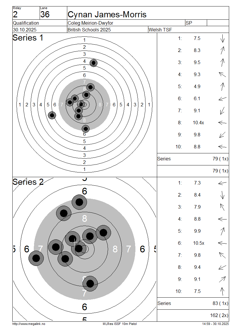 | 8 | 46 | EVANS Archie | Llanfyllin High School | IP | 83 | 78 | 161- 2x | QF | |||||||||||||||||||||||||||||||||||||||||