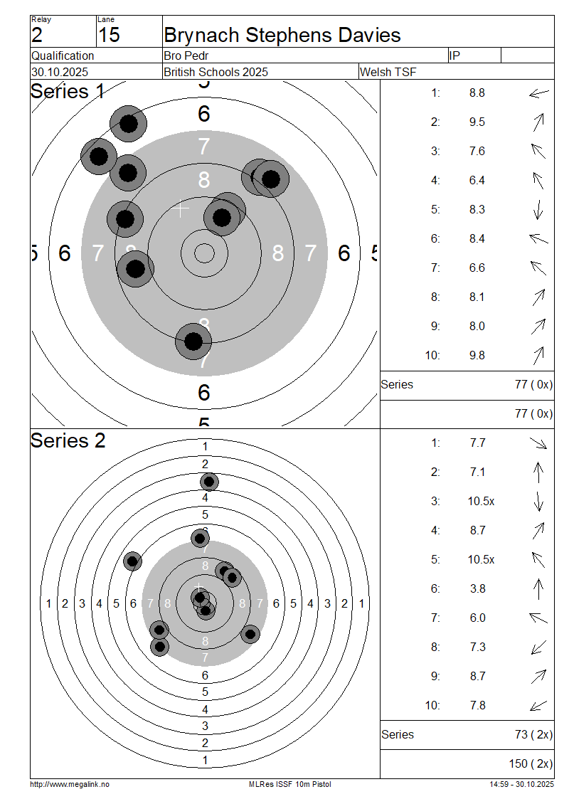 | 15 | 52 | STEPHENS DAVIES Brynach | Bro Pedr | IP | 77 | 73 | 150- 2x | ||||||||||||||||||||||||||||||||||||||||||