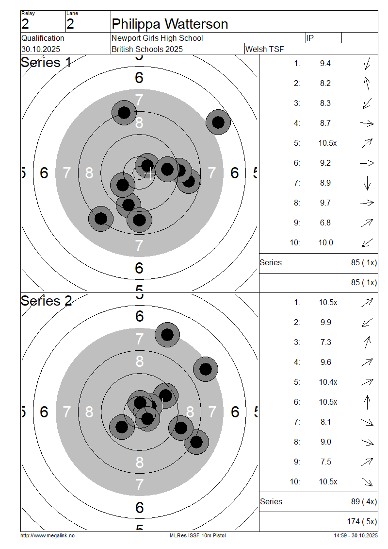 | 2 | 40 | WATTERSON Philippa | Newport Girls High School | IP | 85 | 89 | 174- 5x | QF | |||||||||||||||||||||||||||||||||||||||||