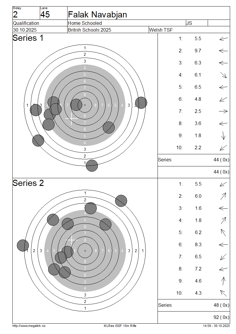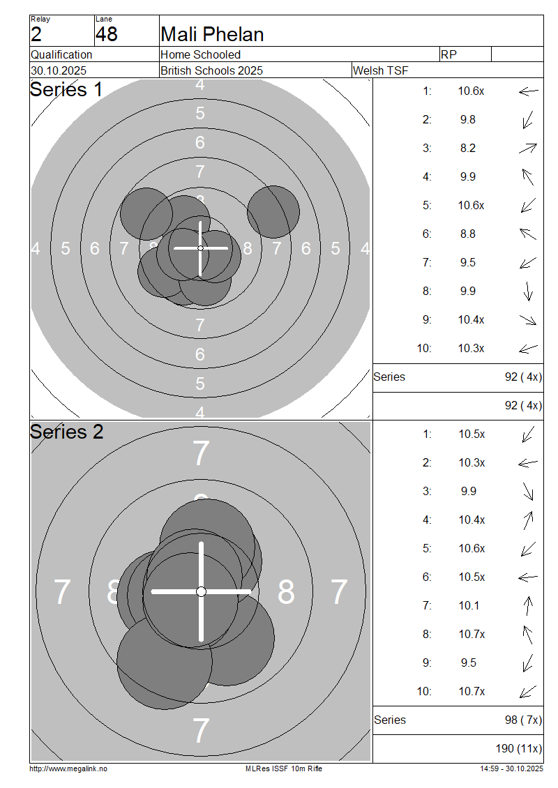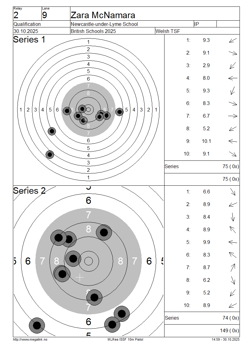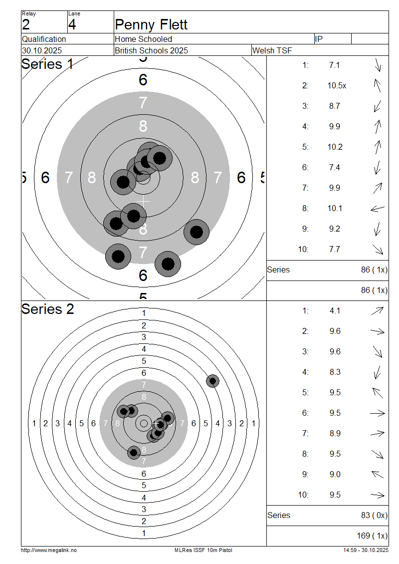 | 20 | 57 | EASTWOOD Lydia | Ash Manor School | SP | 87 | 90 | 177- 3x | QF | |||||||||||||||||||||||||||||||||||||||||