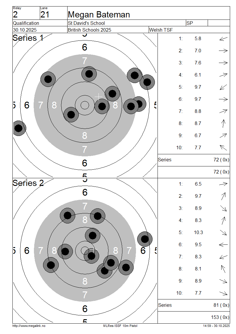 | 21 | 58 | BATEMAN Megan | St David's School | SP | 72 | 81 | 153- 0x | ||||||||||||||||||||||||||||||||||||||||||