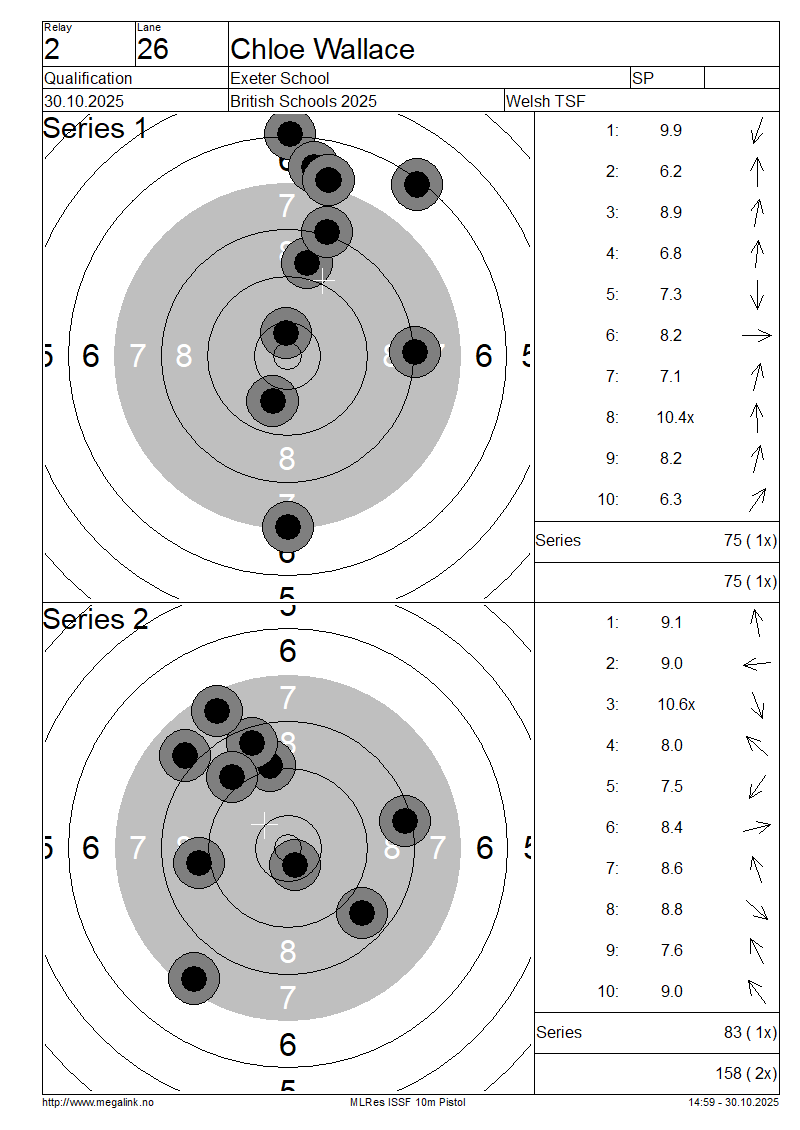 | 26 | 63 | WALLACE Chloe | Exeter School | SP | 75 | 83 | 158- 2x | ||||||||||||||||||||||||||||||||||||||||||