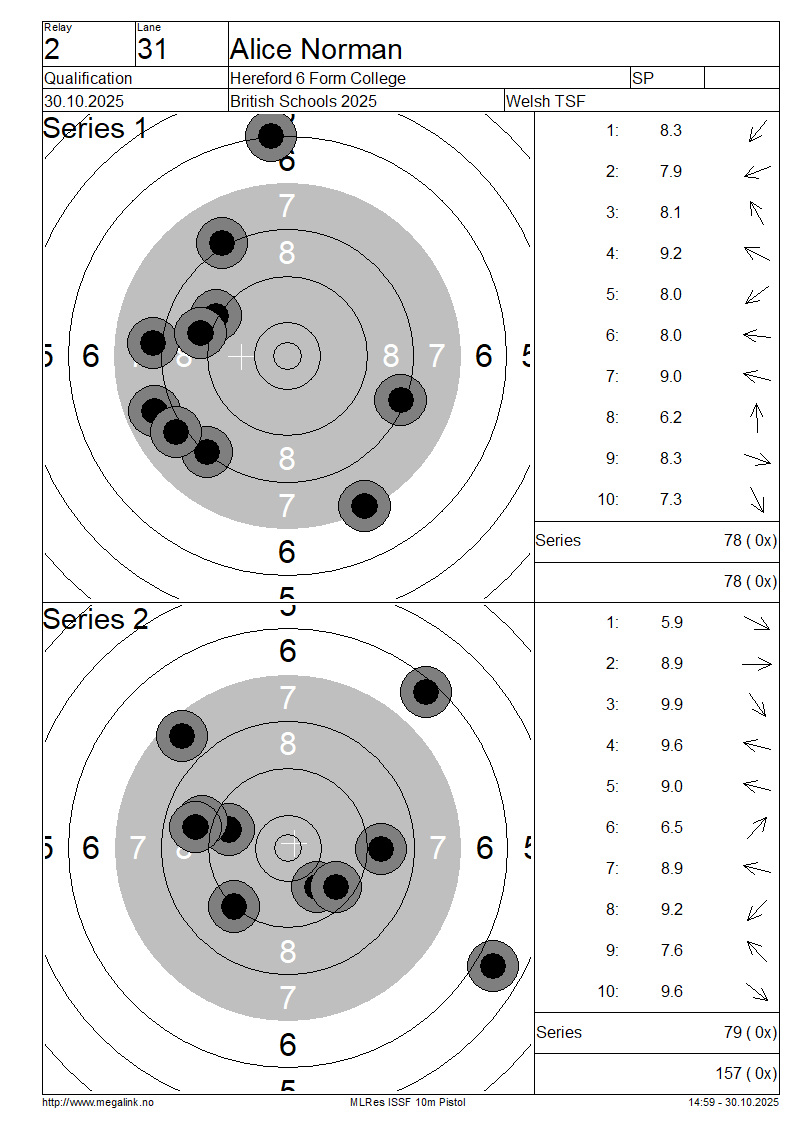 | 31 | 68 | NORMAN Alice | Hereford 6 Form College | SP | 78 | 79 | 157- 0x | ||||||||||||||||||||||||||||||||||||||||||