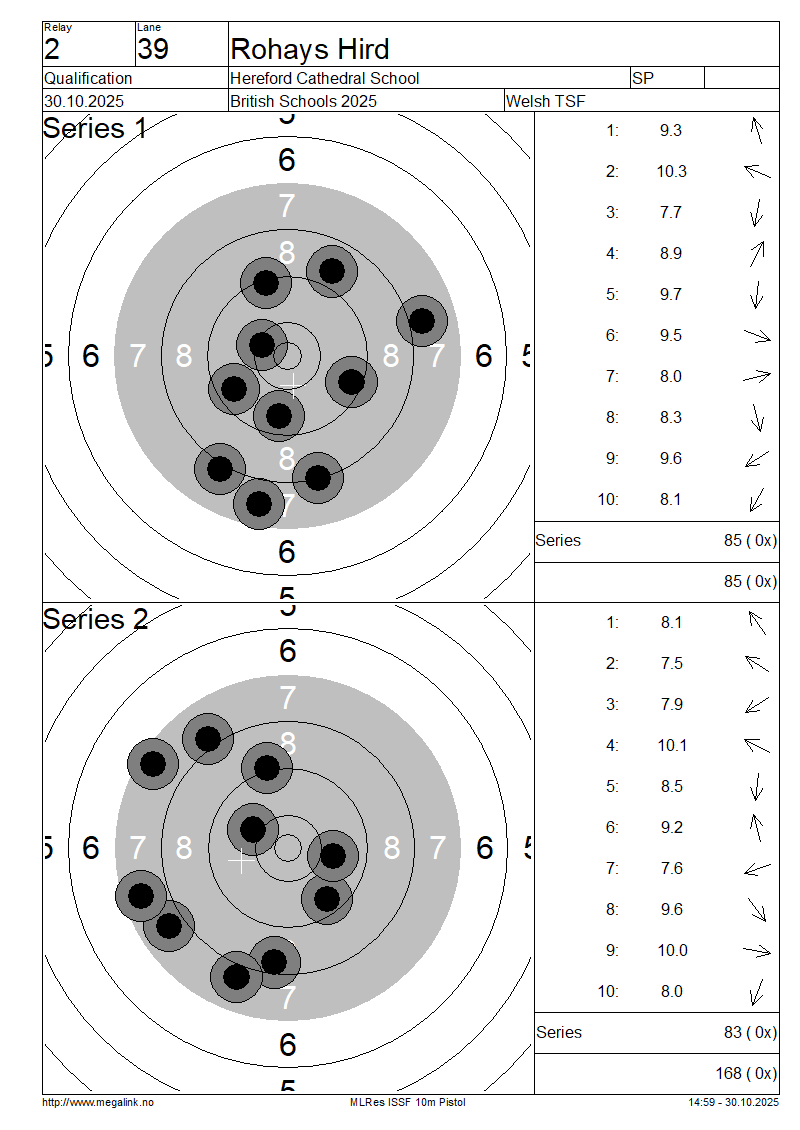 | 39 | 73 | HIRD Rohays | Hereford Cathedral School | SP | 85 | 83 | 168- 0x | QF | |||||||||||||||||||||||||||||||||||||||||