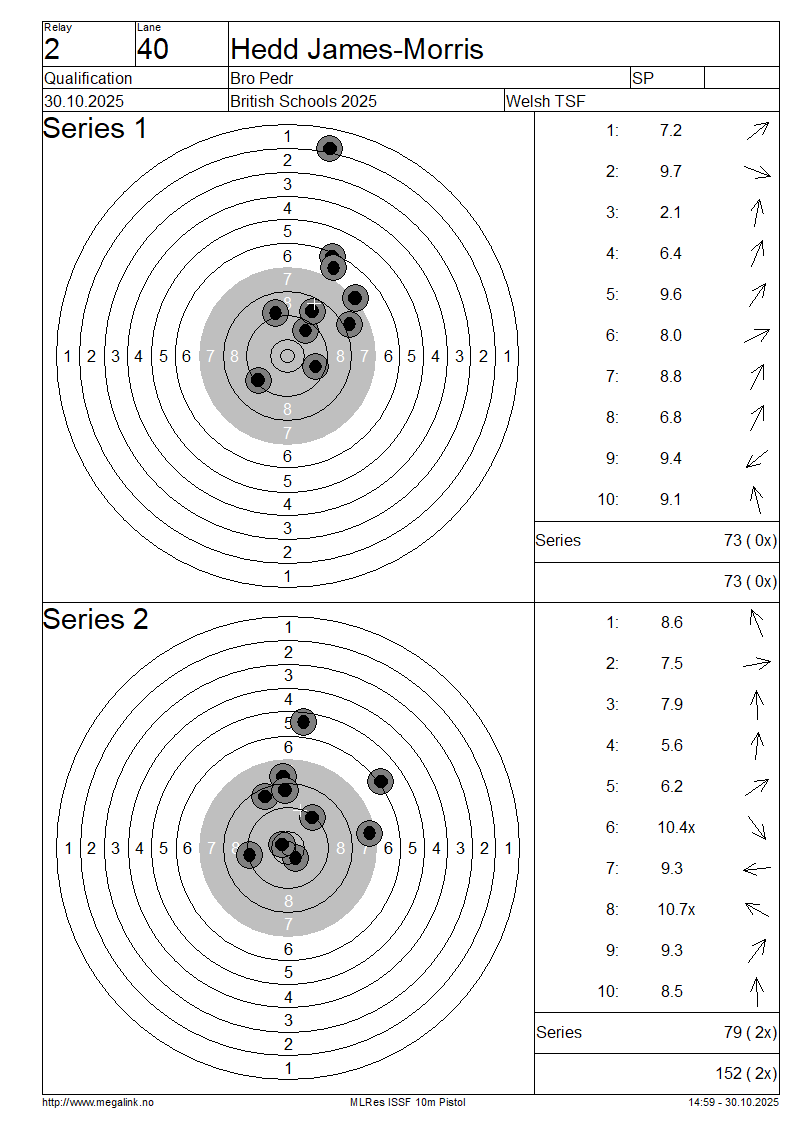 | 40 | 74 | JAMES-MORRIS Hedd | Bro Pedr | SP | 73 | 79 | 152- 2x | ||||||||||||||||||||||||||||||||||||||||||