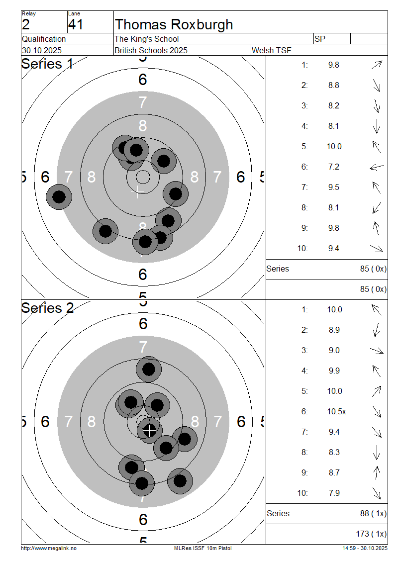| 41 | 75 | ROXBURGH Thomas | The King's School | SP | 85 | 88 | 173- 1x | QF | |||||||||||||||||||||||||||||||||||||||||