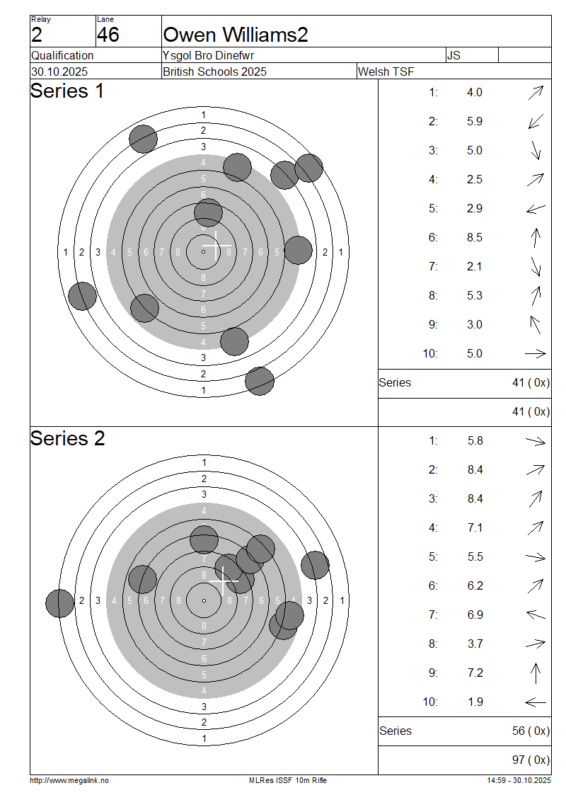| 46 | 80 | WILLIAMS2 Owen | Ysgol Bro Dinefwr | JS | 41 | 56 | 97- 0x | QF | |||||||||||||||||||||||||||||||||||||||||