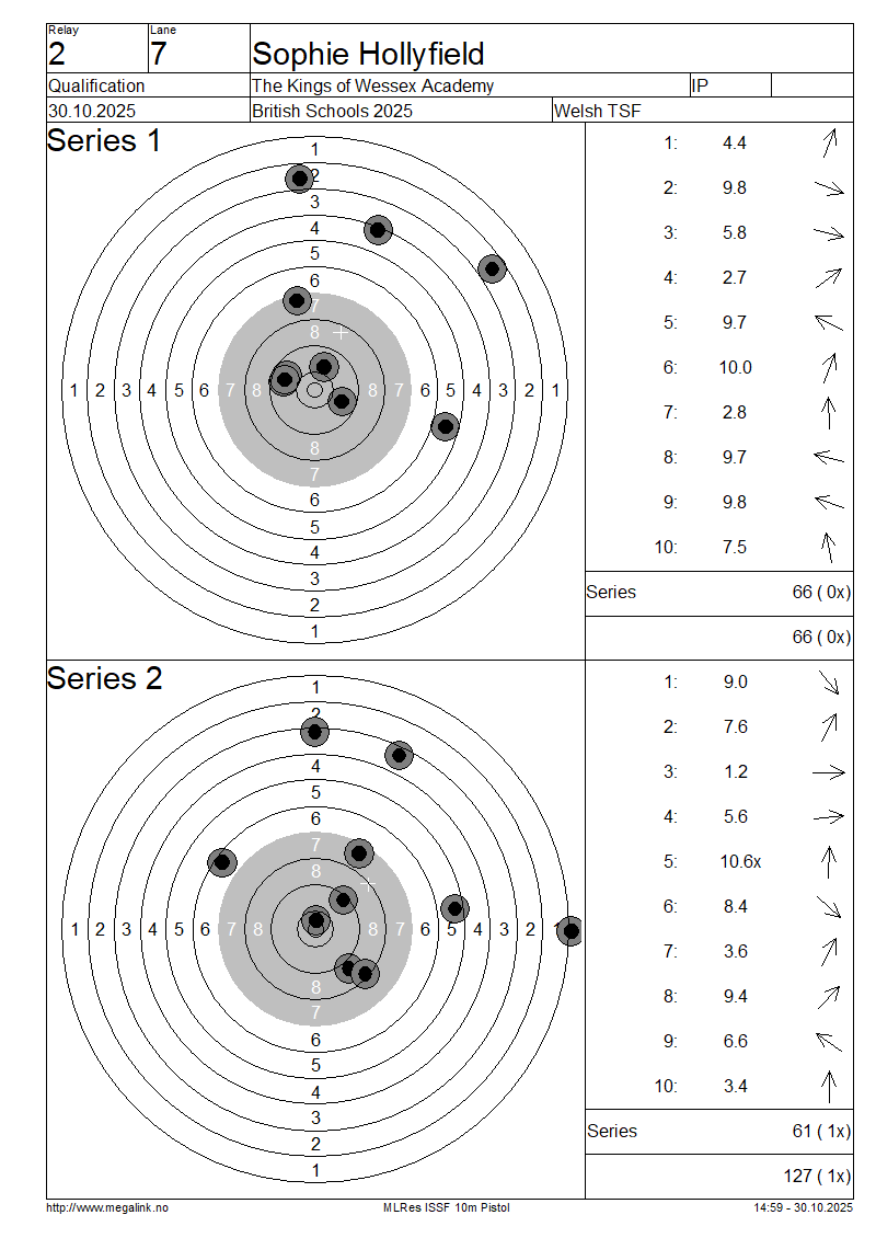 | 7 | 45 | HOLLYFIELD Sophie | The Kings of Wessex Academy | IP | 66 | 61 | 127- 1x | ||||||||||||||||||||||||||||||||||||||||||