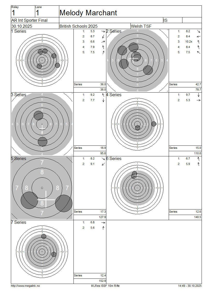 | A | 35 | MARCHANT Melody | 36.0 | 42.7 | 16.9 | 15.0 | 17.3 | 12.6 | 12.4 | 152.9 | SO | ||||||||||||||||||||||||||||||||||||||