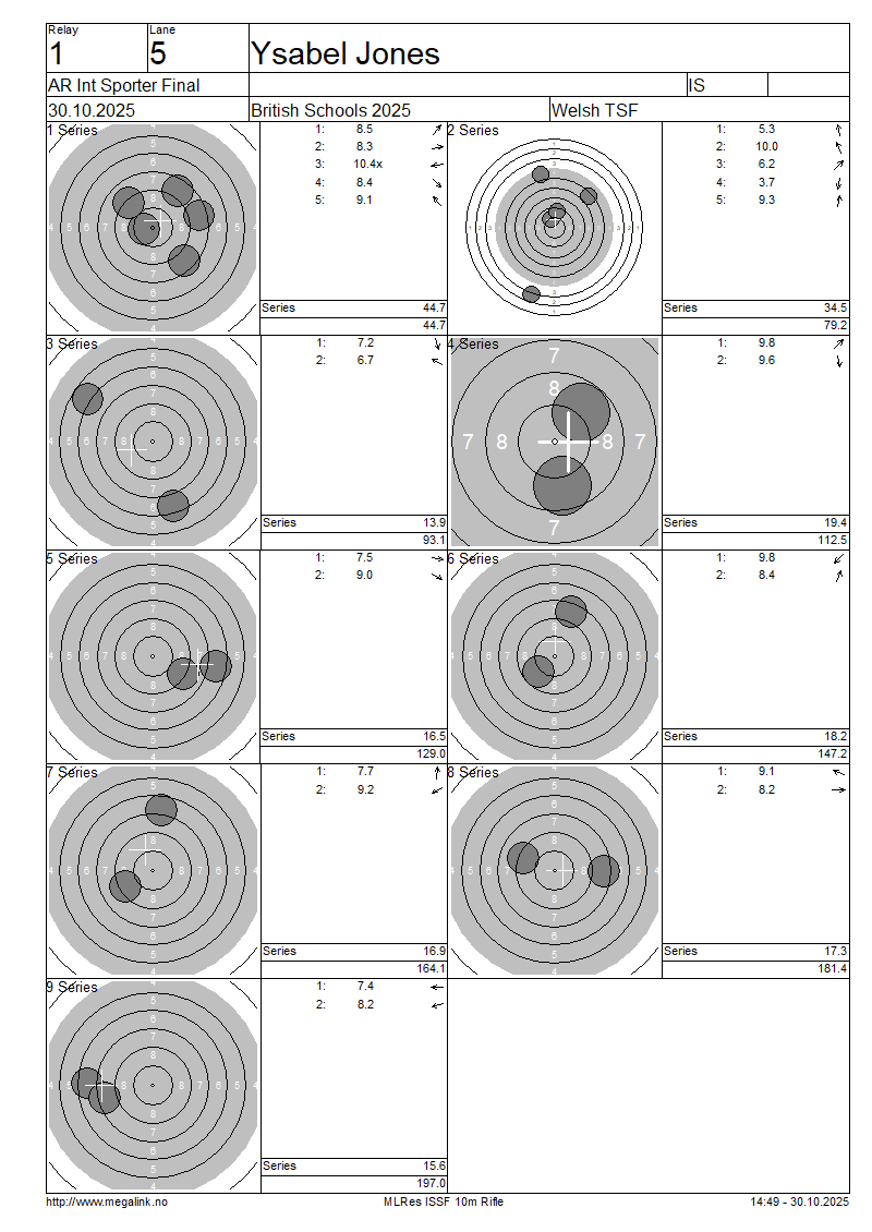| C | 33 | FLETT2 Penny | 37.9 | 39.2 | 14.4 | 18.2 | 16.3 | 17.7 | 19.7 | 18.9 | 13.7 | 196.0 | SO | ||||||||||||||||||||||||||||||||||||