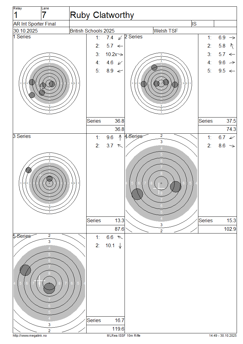 | G | 34 | CLATWORTHY Ruby | 36.8 | 37.5 | 13.3 | 15.3 | 16.7 | 119.6 | SO | ||||||||||||||||||||||||||||||||||||||||