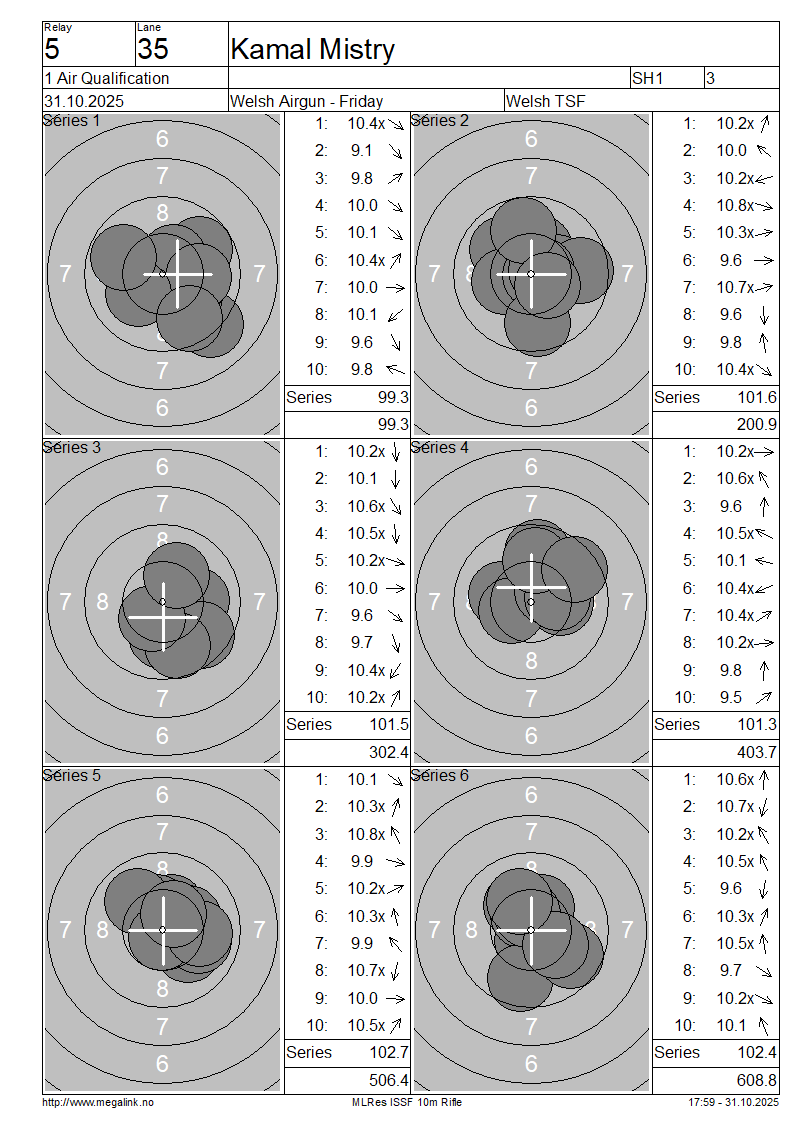 | 35 | 904 | MISTRY Kamal | SH1 | 99.3 | 101.6 | 101.5 | 101.3 | 102.7 | 102.4 | 608.8 | |||||||||||||||||||||||||||||||||||||||