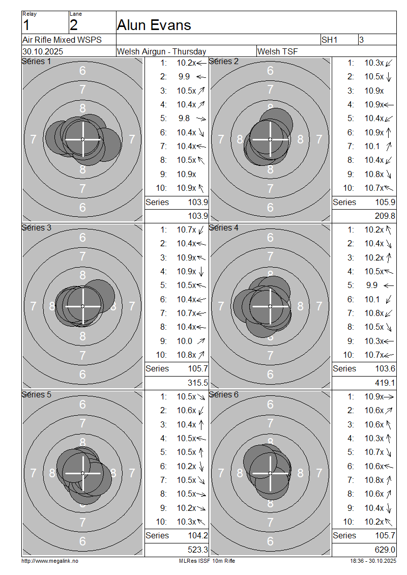 | 2 | 900 | EVANS Alun | SH1 | 103.9 | 105.9 | 105.7 | 103.6 | 104.2 | 105.7 | 629.0 | |||||||||||||||||||||||||||||||||||||||